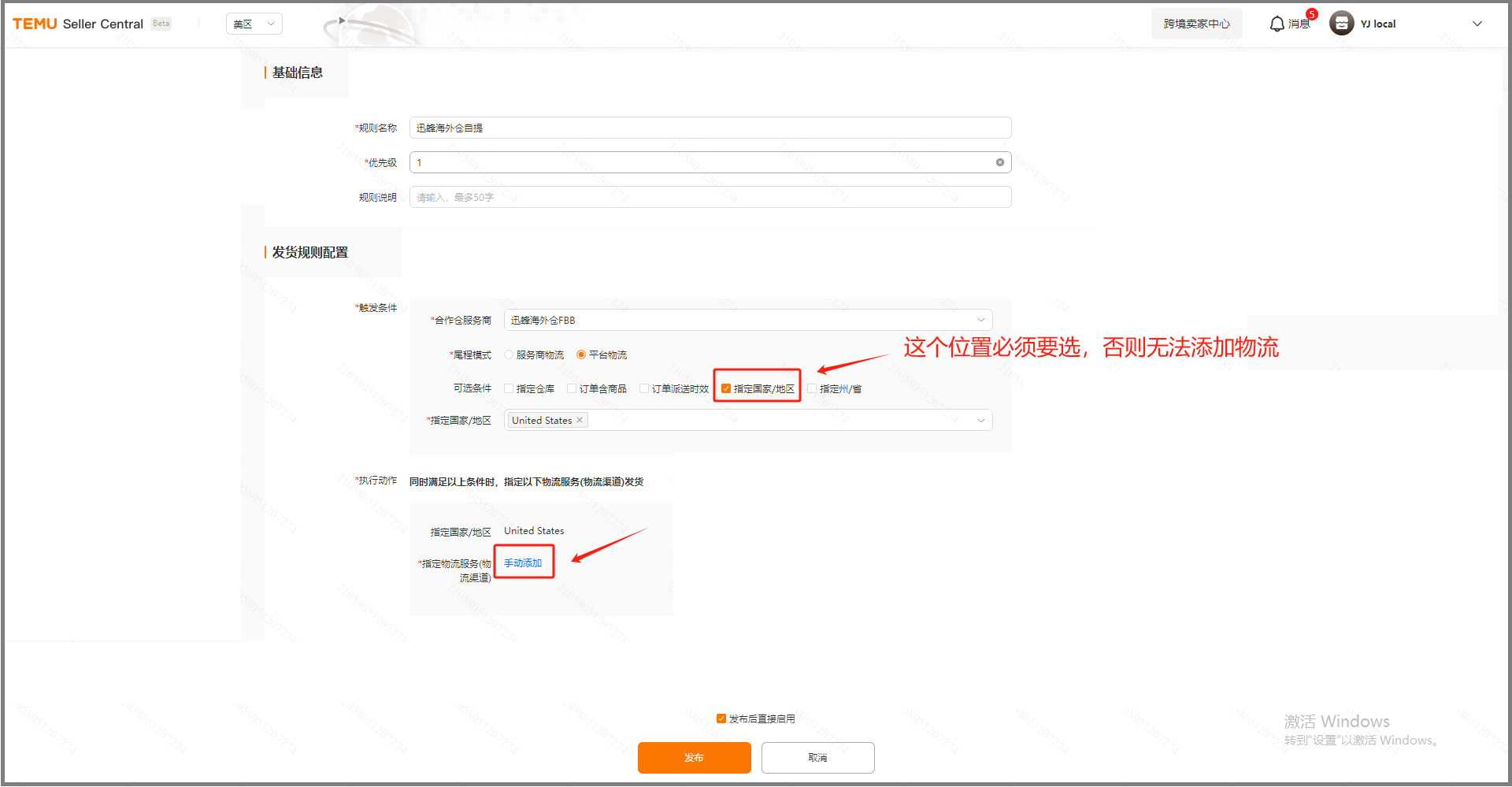 - 订单规则配置 → 尾程模式配置 → 编辑 → 选择平台物流