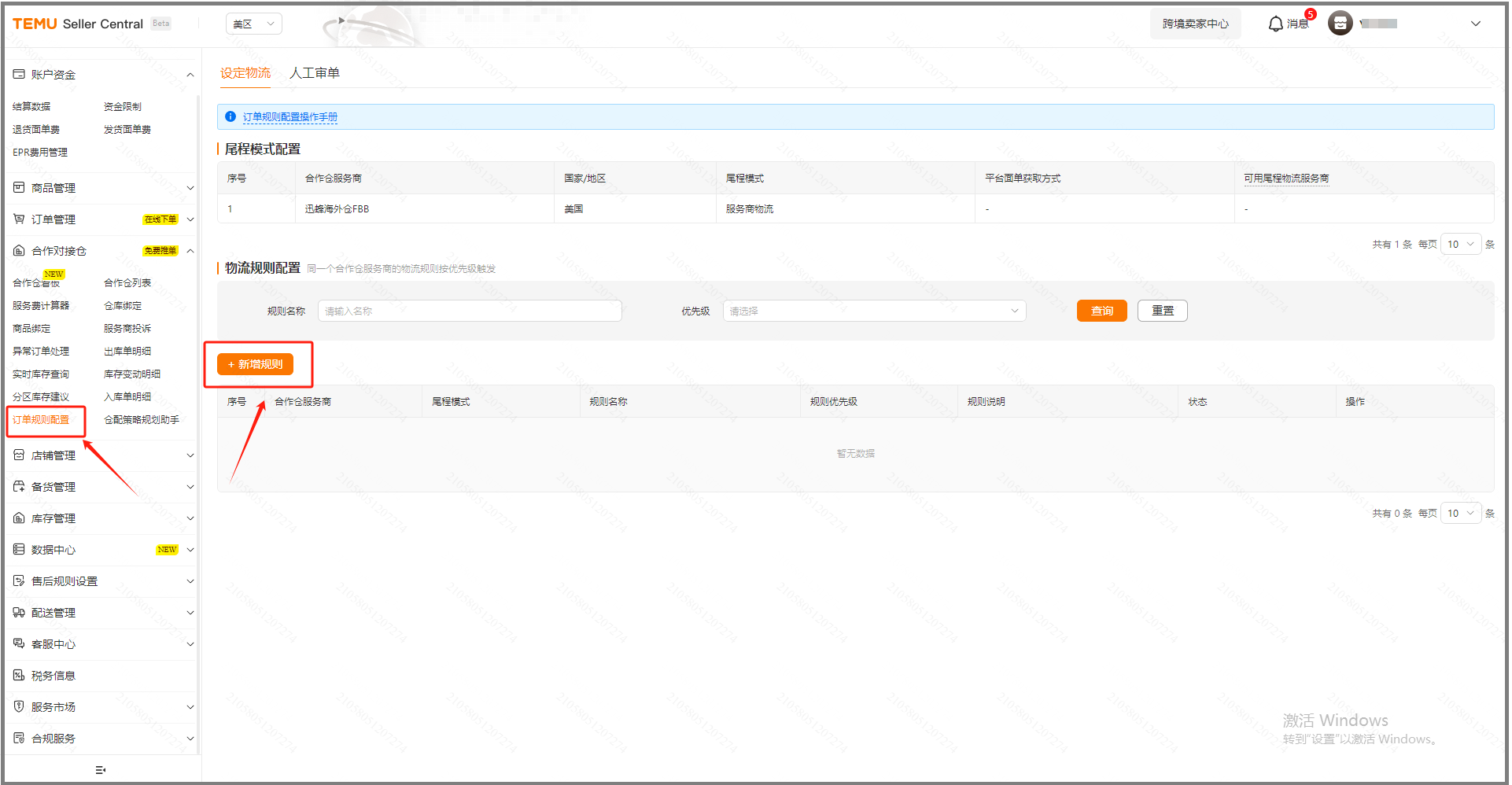 - 订单规则配置 → 新增规则