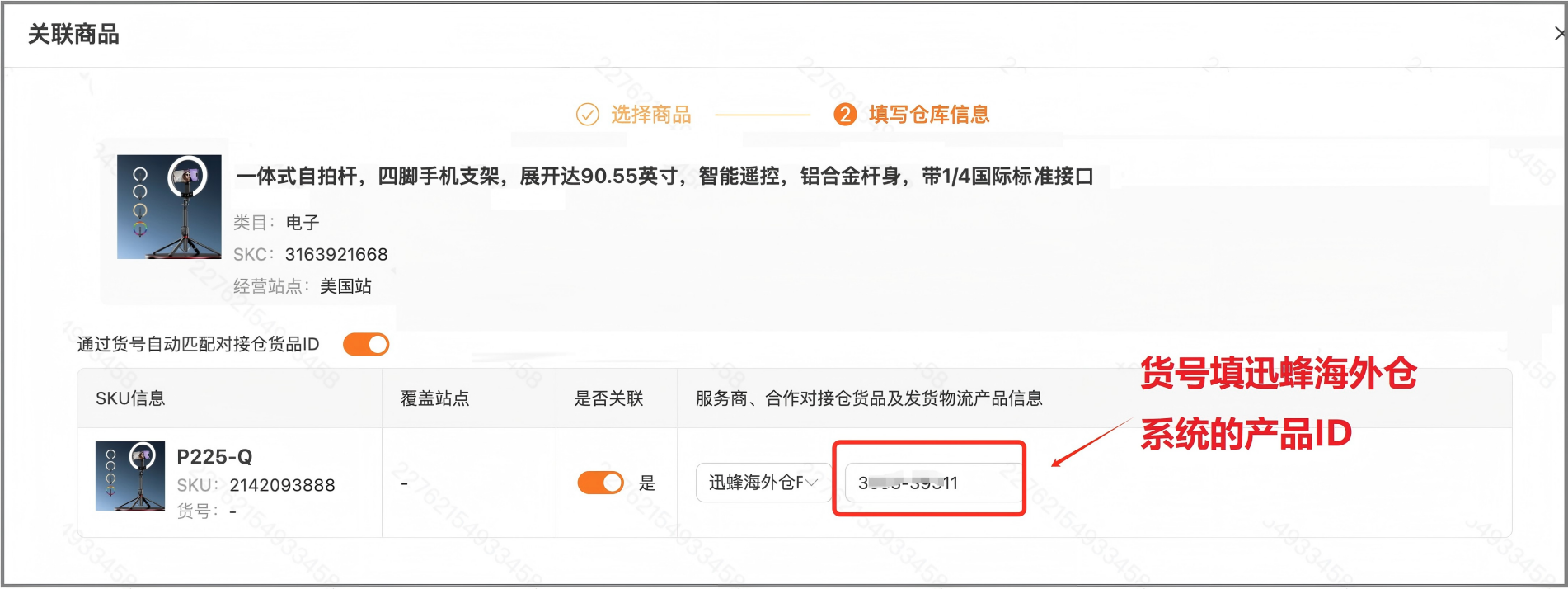2. 货号对应迅蜂海外仓系统产品ID